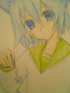 あ、昨日碧い猫について話したから今日思い立って授業中にかいたの。↑